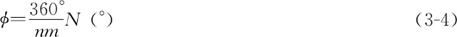 编码器的检测精度与码盘刻度的多少有直接关联,刻度数量越多,识别的能力越强,编码器的精度也就越高,分辨率越强。对应的参数有每转刻线数(Line)、每转脉冲数(PPR)、最小步距(Step)、位(Bit)等。实际转角与刻线数关系见式(3-2)。