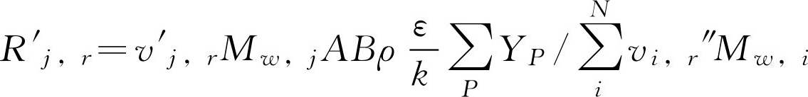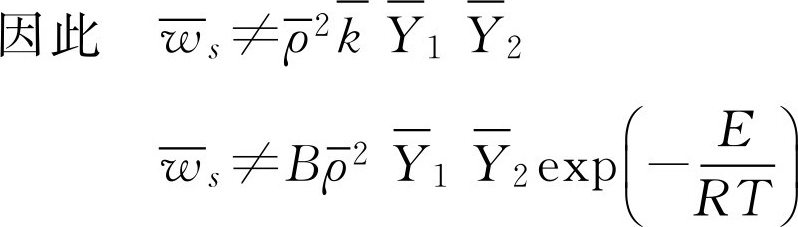 如果忽略密度脉动(即 ρ '=0),则对反应率取时均值后,可有: