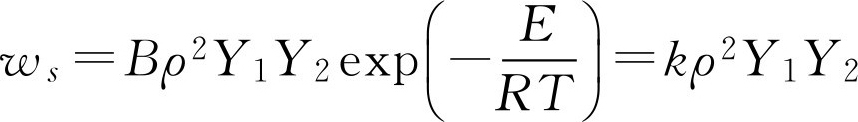 层流或湍流中瞬时反应率,如果按简单的一步统观反应动力学概念,可表达成如下的Arrhenius公式形式: