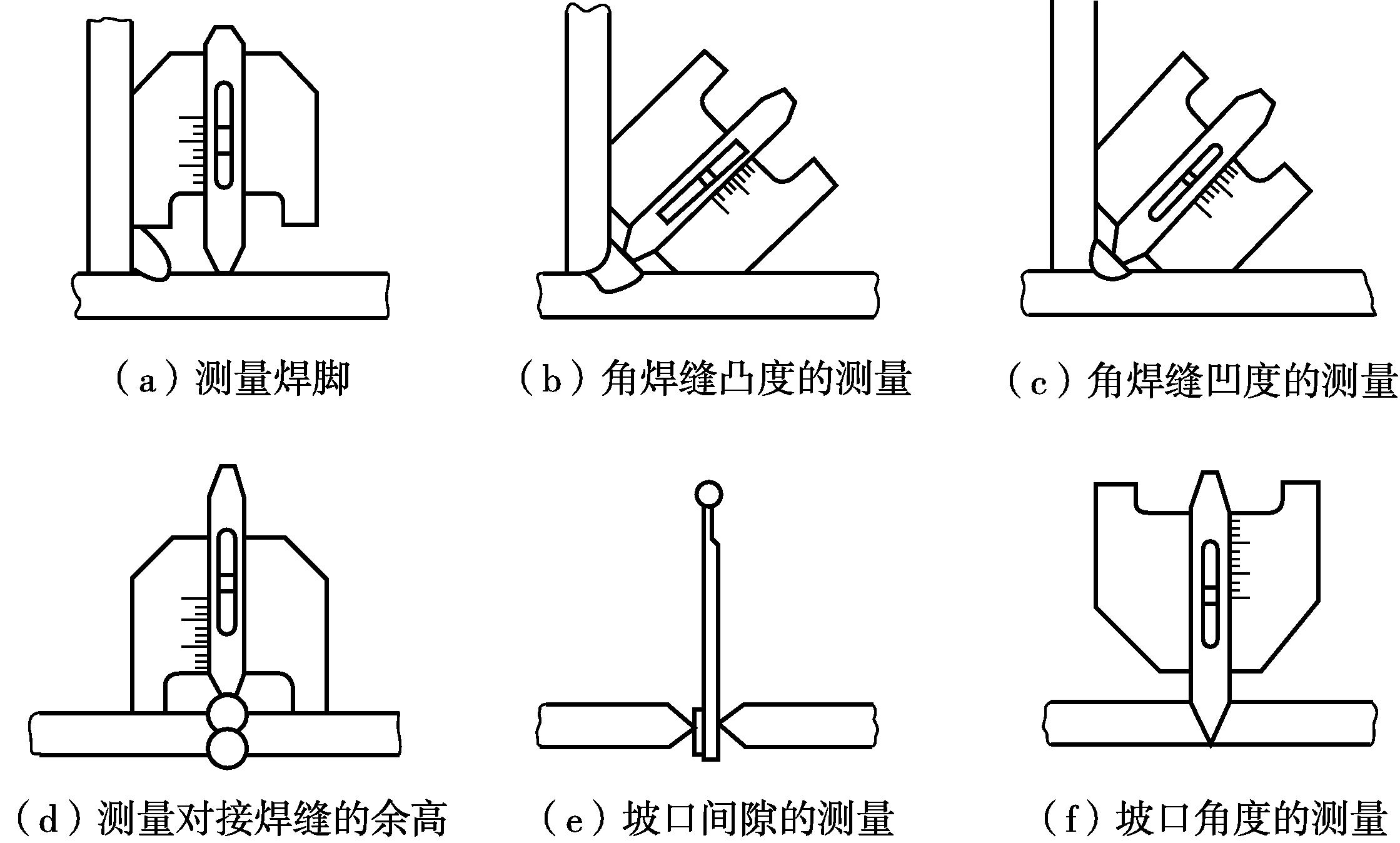 焊缝外形尺寸的检验是按图样标注尺寸或技术标准规定的尺寸对实物进行测量检查。通常在目视检验的基础上,选择焊缝尺寸正常部位、尺寸变化的过渡部位和尺寸异常变化的部位进行测量检查,然后相互比较,找出焊缝外形尺寸变化的规律,与标准规定的尺寸对比,从而判断外形几何尺寸是否符合要求。