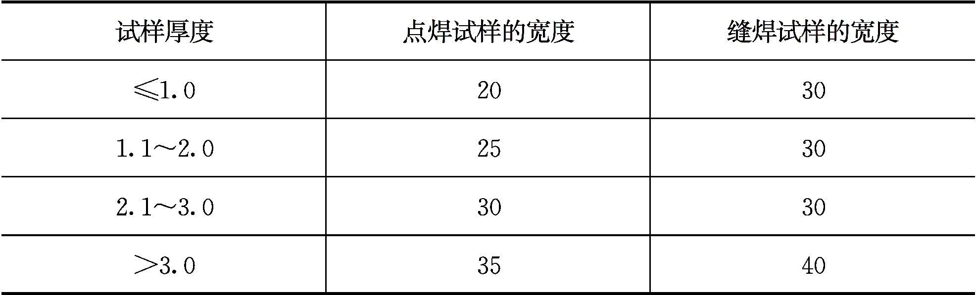 对于点、缝焊的工艺撕裂试样也要进行目视检验,其试样尺寸见表2-2。