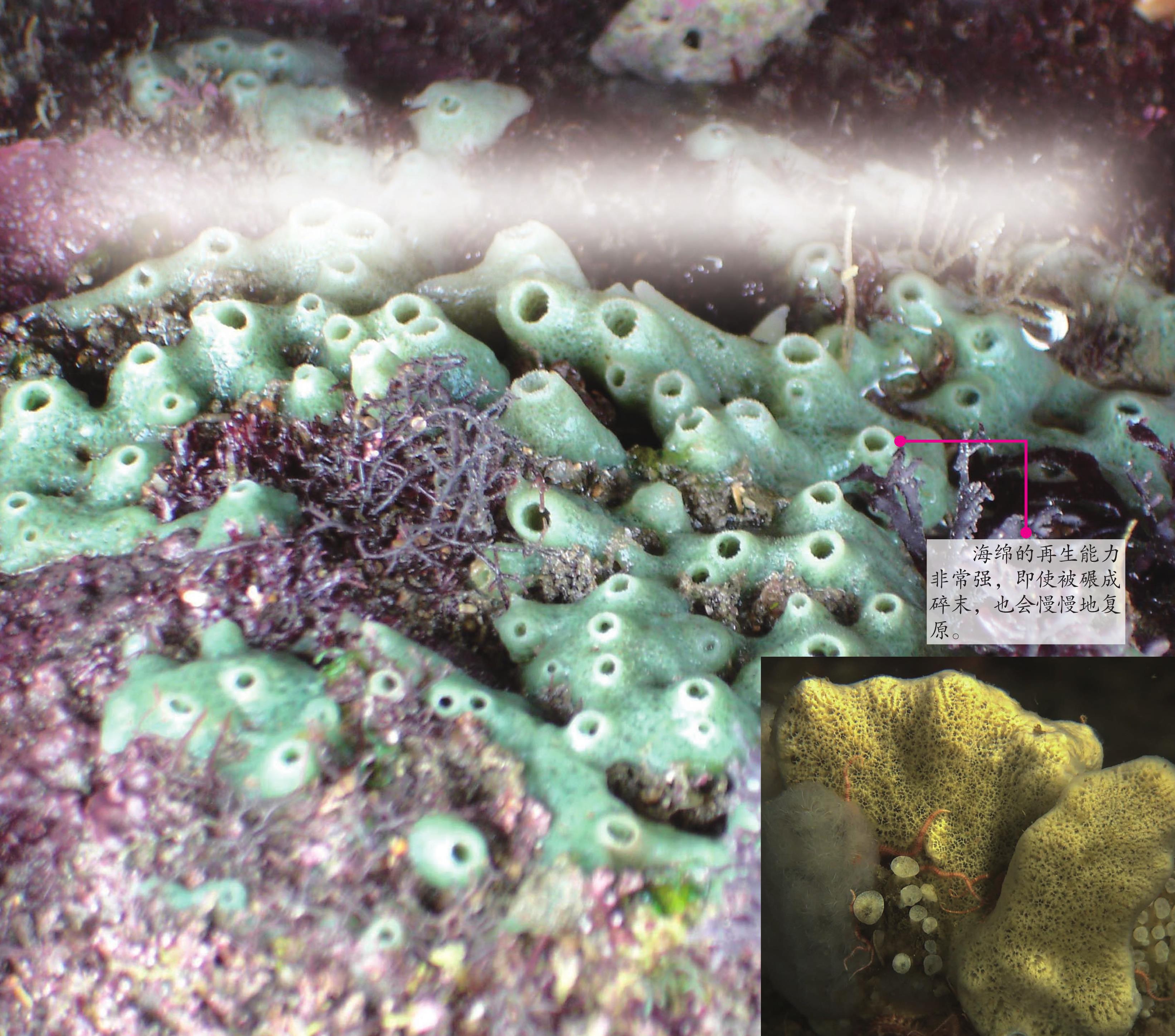 海绵是一种固着在海底的海洋动物,也是最原始的多细胞动物。它全身千疮百孔,柔软如绵,所以叫做海绵。海绵的形状多种多样,有的像圆球,有的像薄片,有的像方块,有的像壶、钵或瓶。它们的个头大小不一,有的小到只有几毫米,有的又大到好几米。它们的颜色很好看,姹紫嫣红,五彩缤纷。