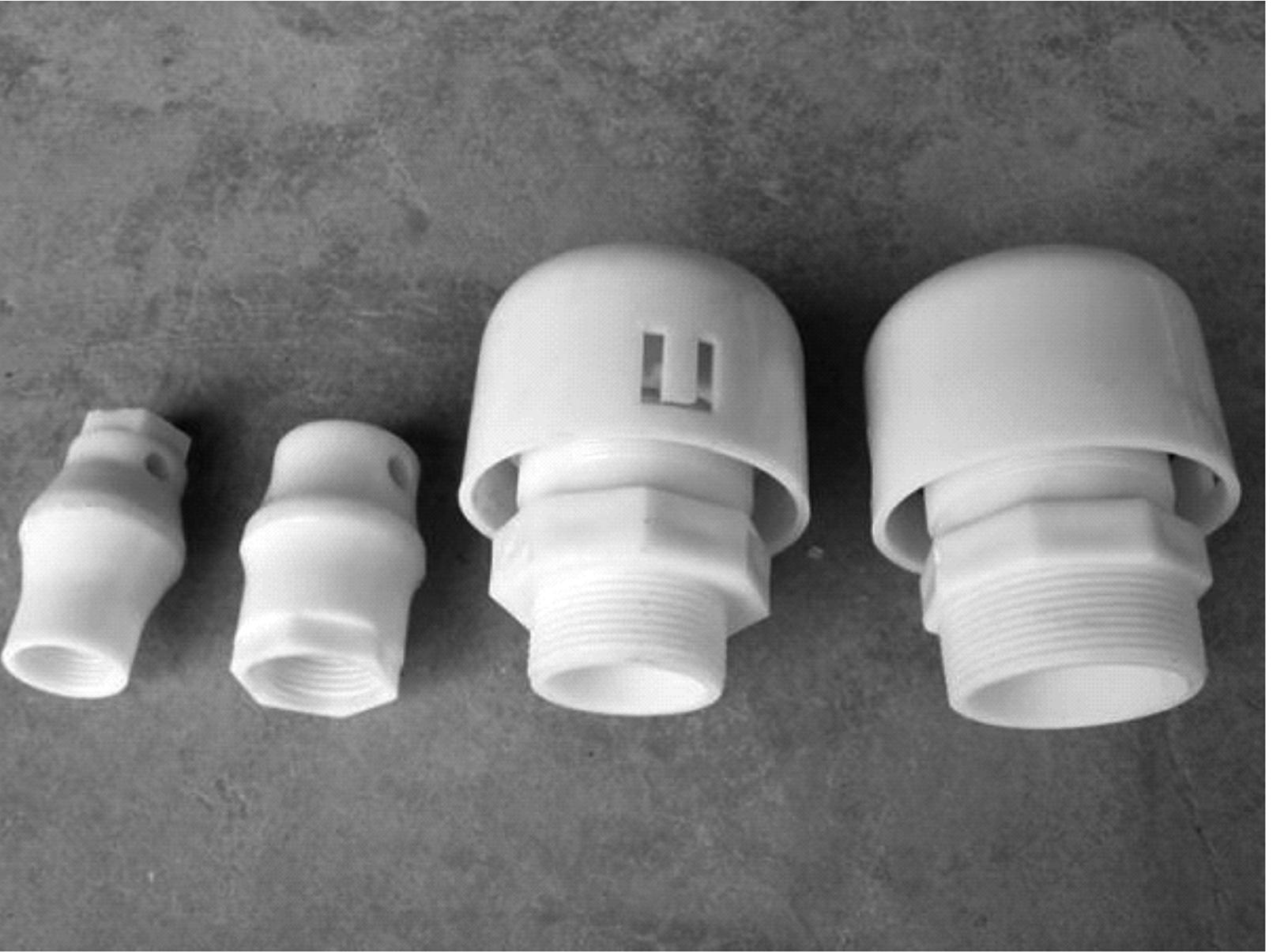 进(排)气阀是能够自动排气和进气,且当压力水来时能够自动关闭的一种安全保护设备,主要作用是排除管内空气,破坏管道真空,有些产品还具有止回水功能。当管道开始输水时,管道内的空气受水的挤压向管道高处集中,如空气无法排出,就会减小过水断面,严重时会截断水流,还会造成高于工作压力数倍的压力冲击。当水泵停止供水时,如果管道中有较低的出水口(如灌水器),则管道内的水会流向系统低处而向外排出,此时会在管内较高处形成真空负压区,压差较大时对管道系统不利,解决此类问题的方法便是在管道系统的最高处和管路中凸起处安装进(排)气阀。进(排)气阀是管路安全的重要设备,不可缺少。一些非专业的设计不安装进(排)气阀造成爆管及管道吸扁,使系统无法正常工作(图2-20)。