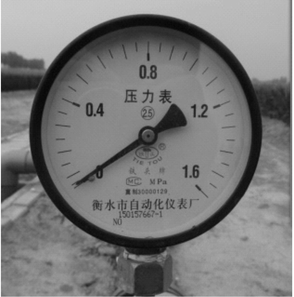压力表是所有设施灌溉系统必需的量测装置,它是测量系统管道内水压的仪器,它能够实时反映系统是否处于正常工作状态,当系统出现故障时,可根据压力表读数变化的大小初步判断可能出现的故障类型,压力表常安装于首部枢纽、轮灌区入口处、支管入口处等控制节点处,实际数量及具体位置要根据喷灌区面积、地形复杂程度等确定。在过滤器前后一般各需安装1个压力表,通过两端压力差大小判断过滤器堵塞程度,以便及时清洗,防止过滤器堵塞减小过水断面,造成田间工作压力及流量过小而影响灌溉质量。喷灌用压力表要选择灵敏度高、工作压力处于压力表主要量程范围内、表盘较大、易于观看的优质产品。喷灌系统工作状态除田间观察外,主要由压力表反映,因此,必须保证压力表处于正常工作状态,出现故障要及时更换(图2-22)。
