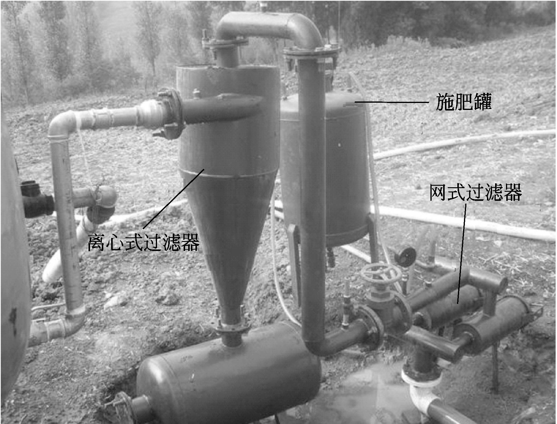 首部枢纽的作用是从水源取水、增压,并将其处理成符合灌溉施肥要求的水流输送到田间系统中去,包括加压设备(水泵、动力机)、过滤设备、施肥设备、控制与测量设备等。其中施肥设备在第二节详细讲述。