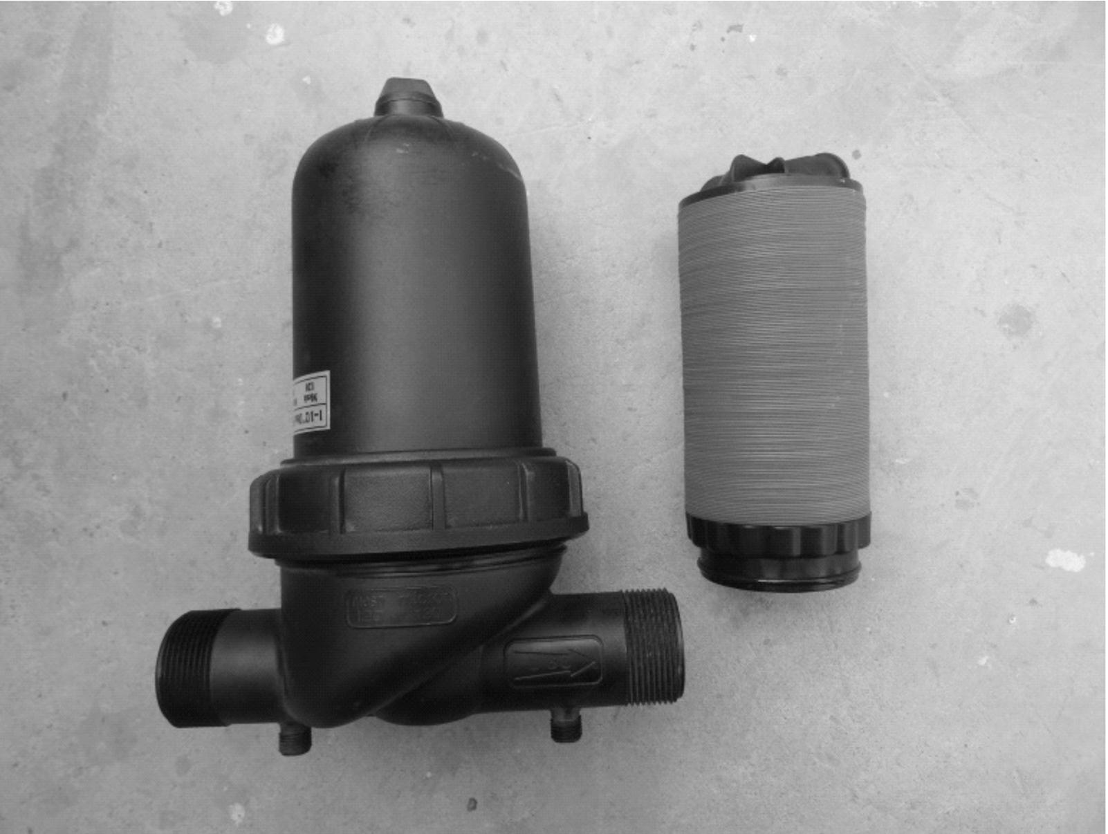 对于灌溉水中物理杂质的处理则主要采取拦截过滤的方法,常见的有拦污栅(网)、沉淀池和过滤器。过滤设备根据所用的材料和过滤方式可分为筛网式过滤器、叠片式过滤器、砂石过滤器、离心分离器、自净式网眼过滤器、沉沙池、拦污栅(网)等。在选择过滤设备时要根据灌溉水源的水质、水中污物的各类、杂质含量,结合各种过滤设备的规格、特点及本身的抗堵塞性能,进行合理的选取。