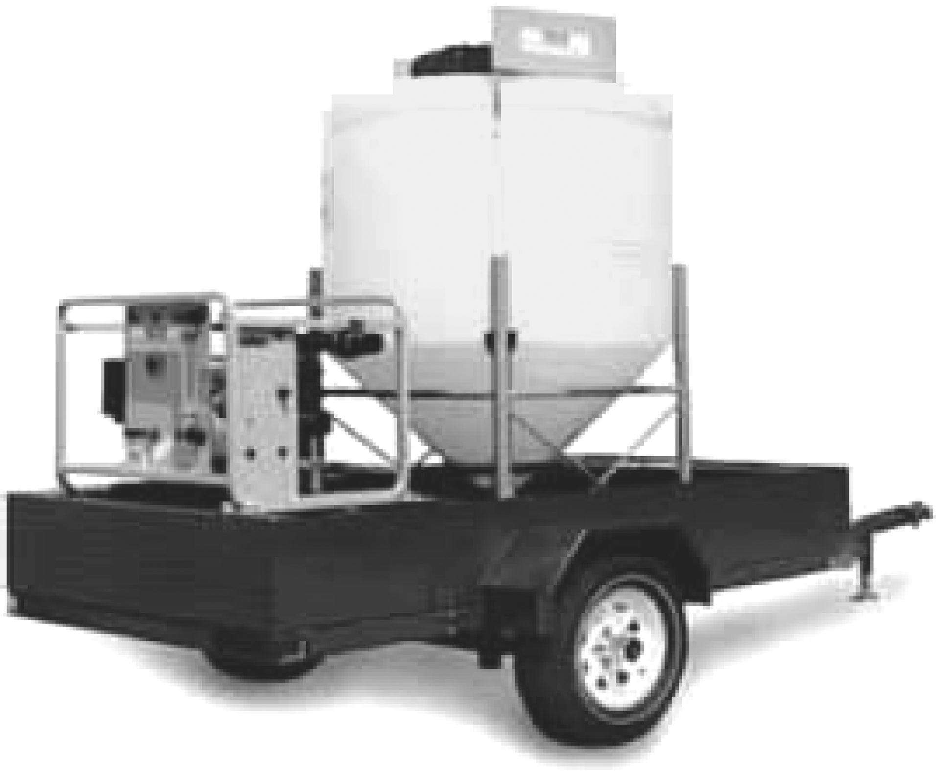 电动泵类型及规格很多,有从仅供几升的小流量泵到与水表连接能按给定比例注射肥料溶液和供水的各种泵型。因需电源,这些泵适合在固定的场合,如温室或井边使用。因肥料会腐蚀泵体,常用不锈钢或塑料材质制造。用内燃机(含拖拉机)驱动的泵常见的是机载的喷油机泵,泵应是耐腐蚀的,并需配置数百升容积的施肥罐。优点是启动和停机均靠手动操作,便于移动,供水量可以调节等(图2-44)。