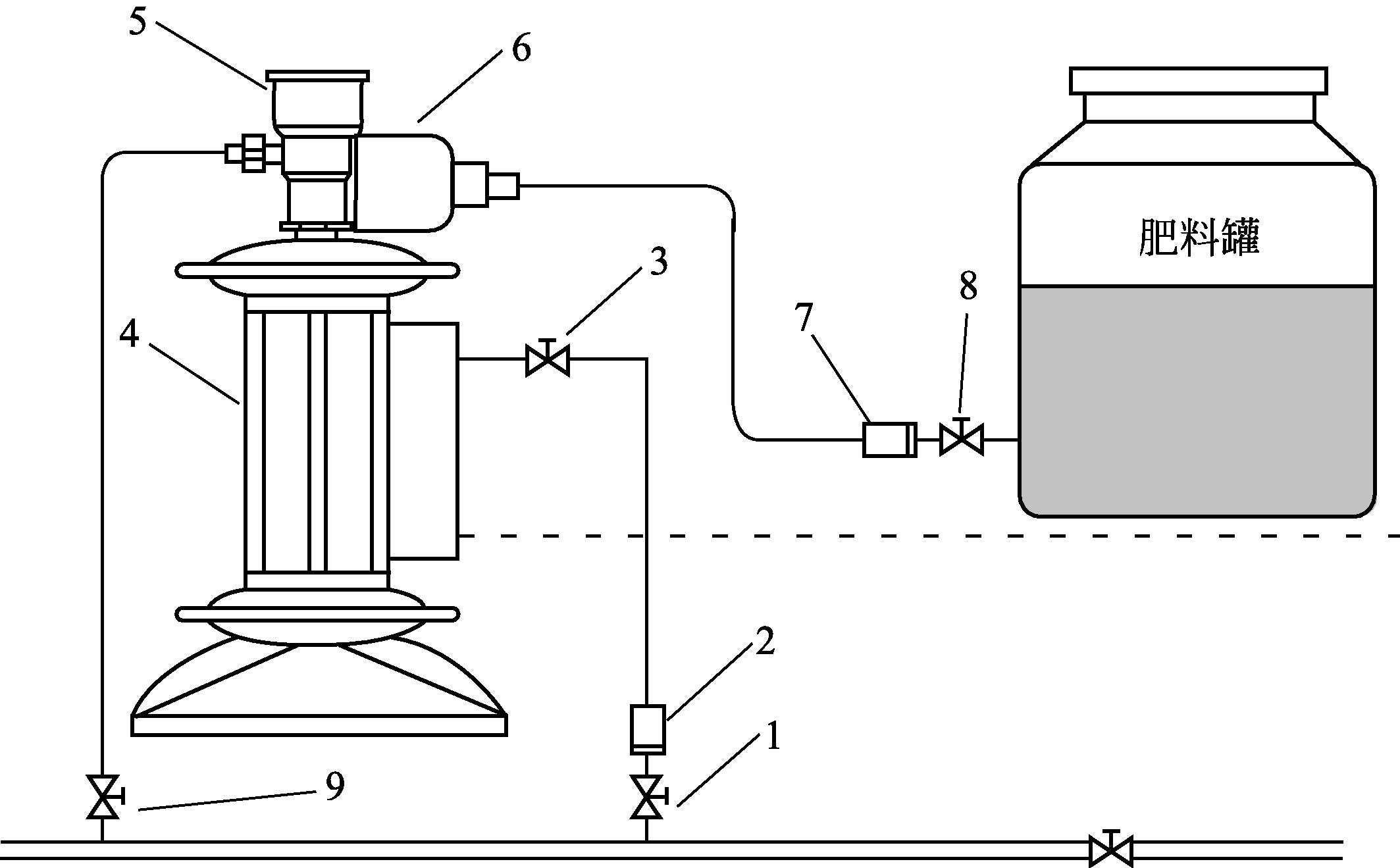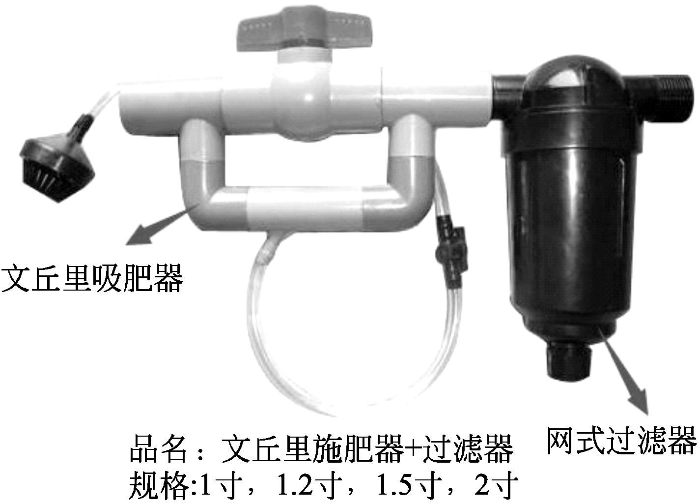 由于文丘里施肥器会造成较大的压力损耗,通常安装时加装一个小型增压泵。一般厂家均会告知产品的压力损耗,设计时根据相关参数配置加压泵或不加泵(图2-32)。