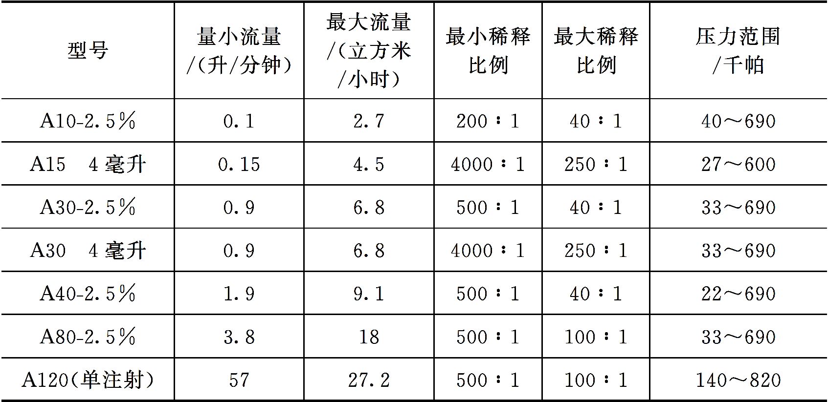 表2-7 美国DOSMATIC国际公司几种型号的施肥泵的技术参数