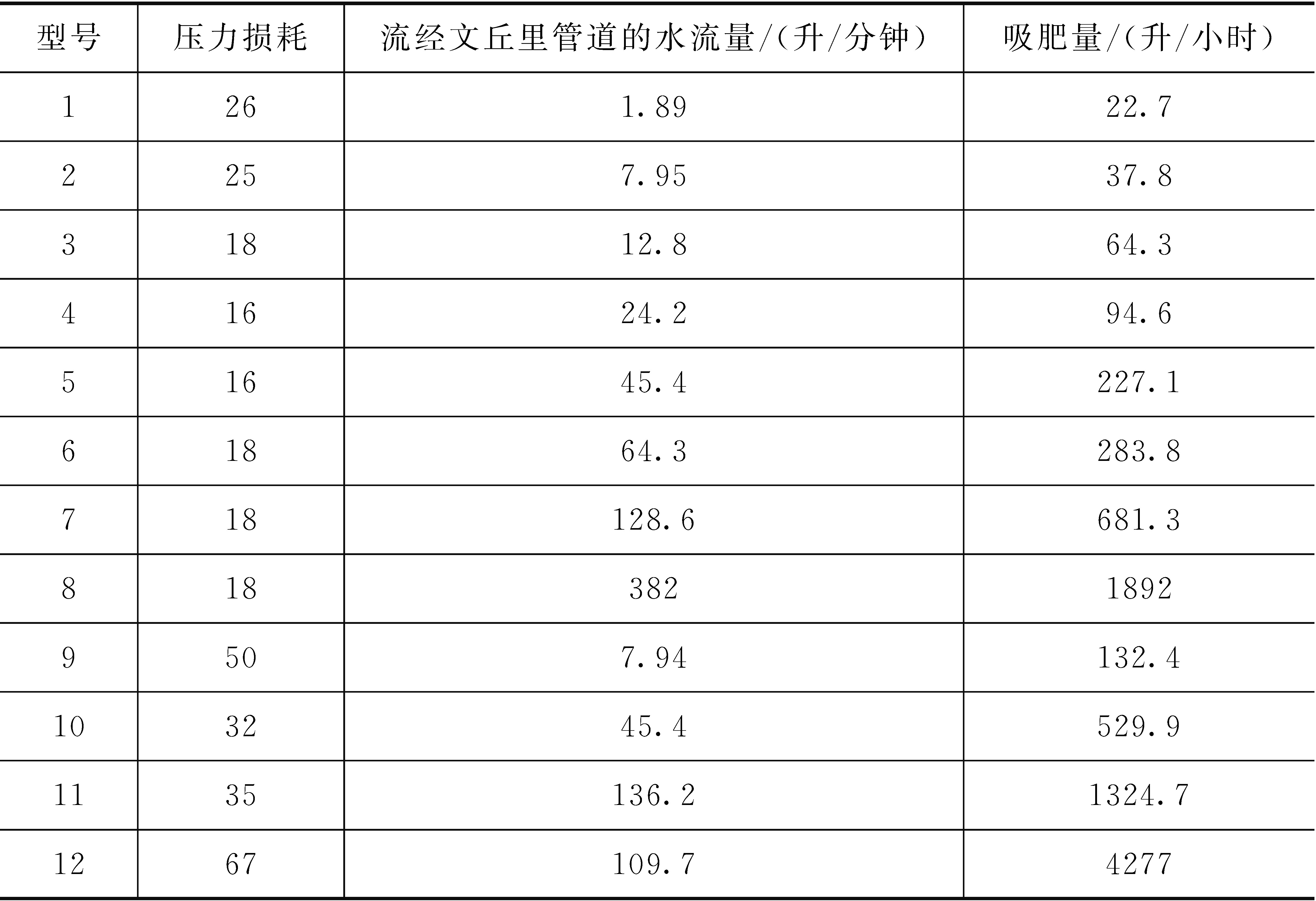 表2-6 文丘里施肥器压力差与吸肥量的关系