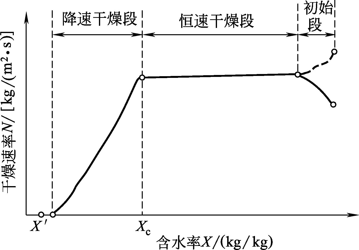 值得注意的是,当干燥速率曲线形状呈现出急剧转变时,食品材料可能有不止一个临界含水率。这通常与由于组织或化学变化而导致的干燥机理变化有关。此外,临界含水率 X c 不仅仅只是物料属性,也取决于干燥条件,必须由试验来加以确定。