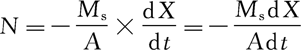 干燥速率,即单位时间通过单位干燥表面积的水分通量为: