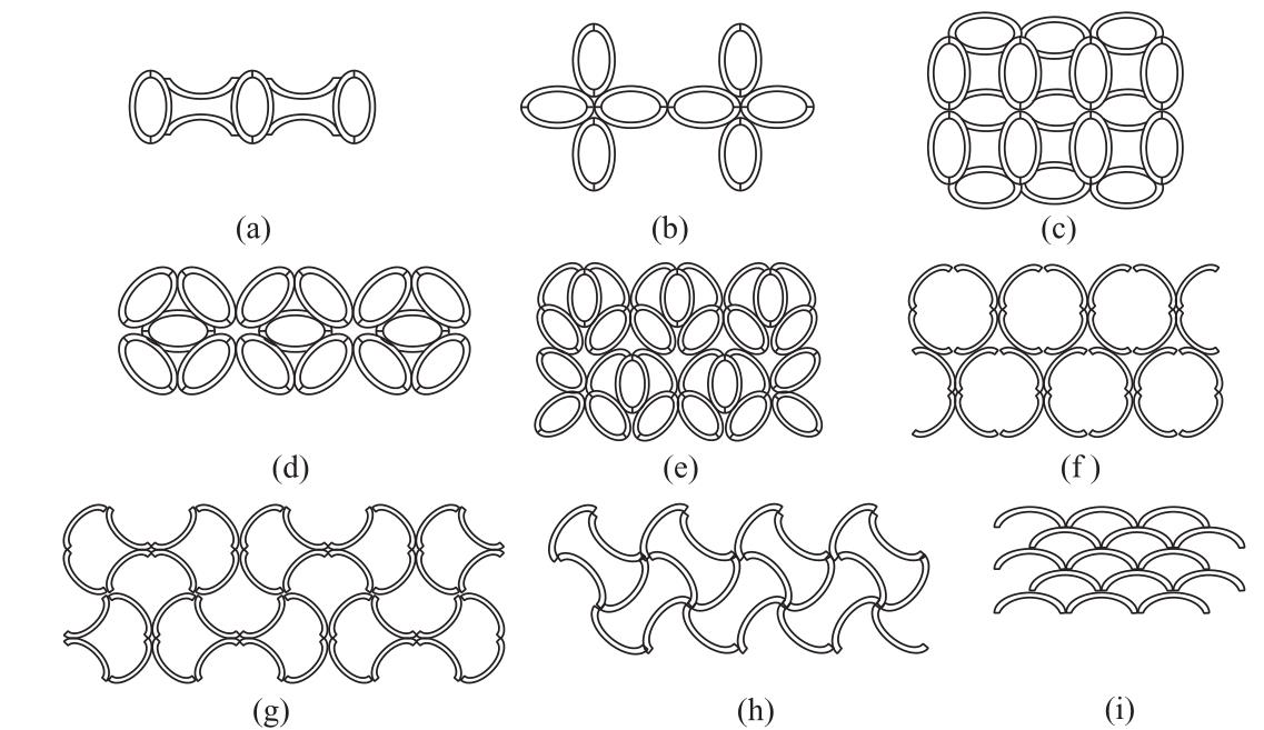 (a)竹节纹;(b)十字花;(c)轱辘钱;(d)喇叭花形;(e)西番莲套;(f)宝珠形;(g)短银锭套;(h)斜银锭纹;(i)鱼鳞纹