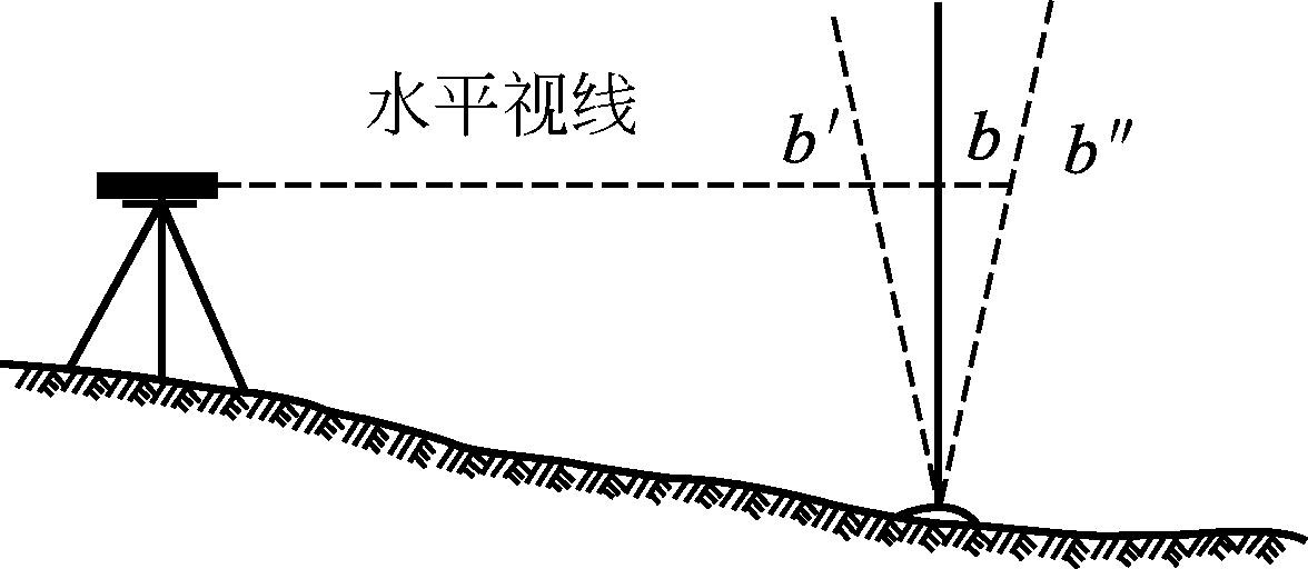 如图2-27所示,水准测量时,若水准标尺前、后倾斜,从水准仪的望远镜视场中不会察觉。在倾斜标尺上的读数总是比正确的标尺读数大,且视线高度越大,误差就越大。为减少水准标尺竖立不直产生的读数误差,可使用安装有圆水准器的水准标尺,并注意在测量工作中认真扶尺,使标尺竖直。