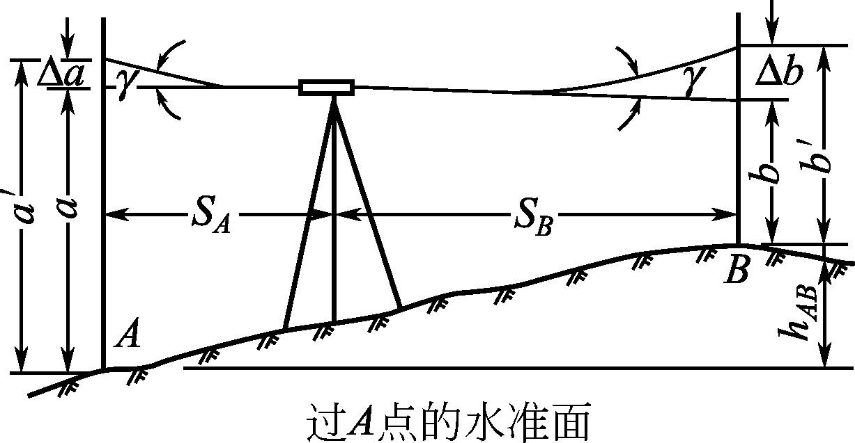 如图2-29(b)所示,如果往测与返测标尺下沉量是相同的,则由于误差符号相同,而往测与返测高差符号相反,因此,取往测和返测高差的平均值可消除其影响。
