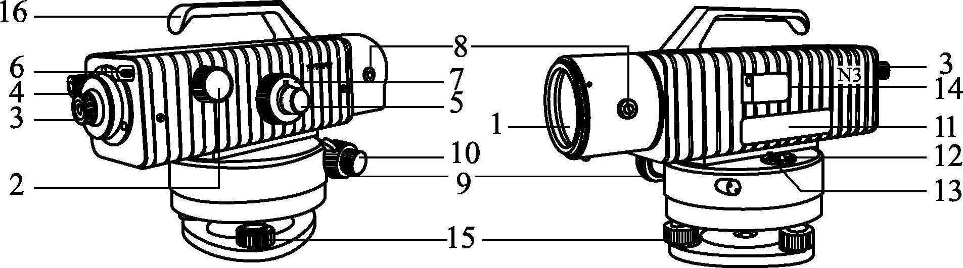 (4)坚固稳定的仪器结构 为了相对稳定视准轴与水准轴之间的关系,精密水准仪的主要构件均采用特殊的因瓦合金钢制成。