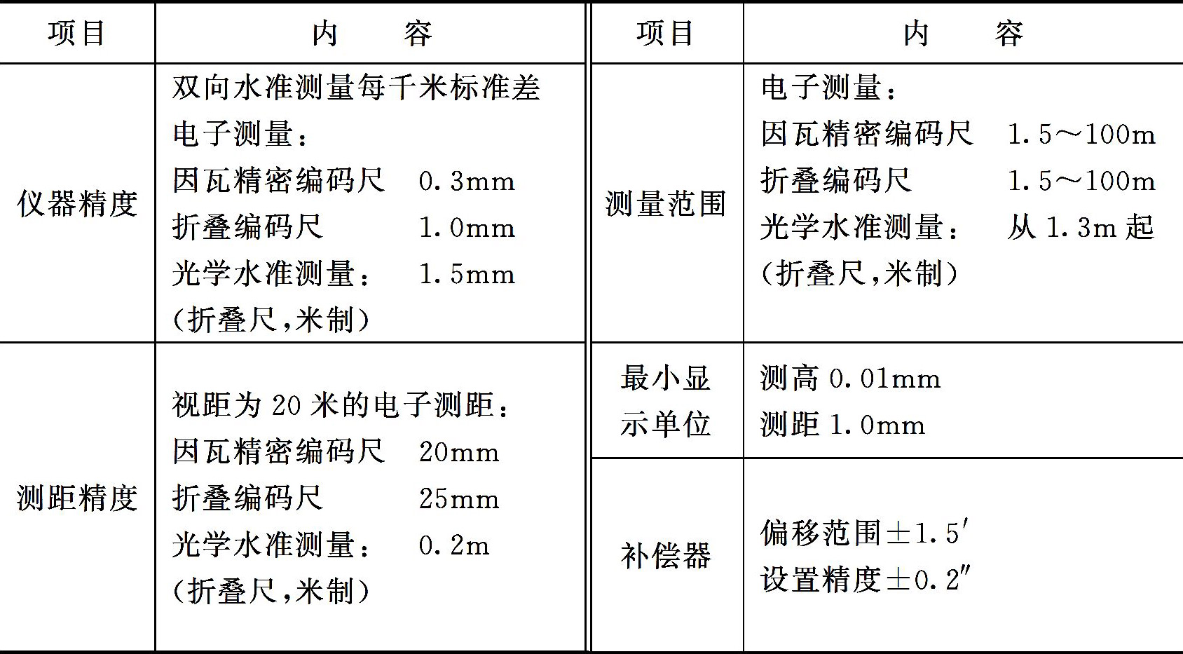 设置完成后,即可按照测量程序进行。表2-3列出了DiNi03电子水准仪的主要技术参数。