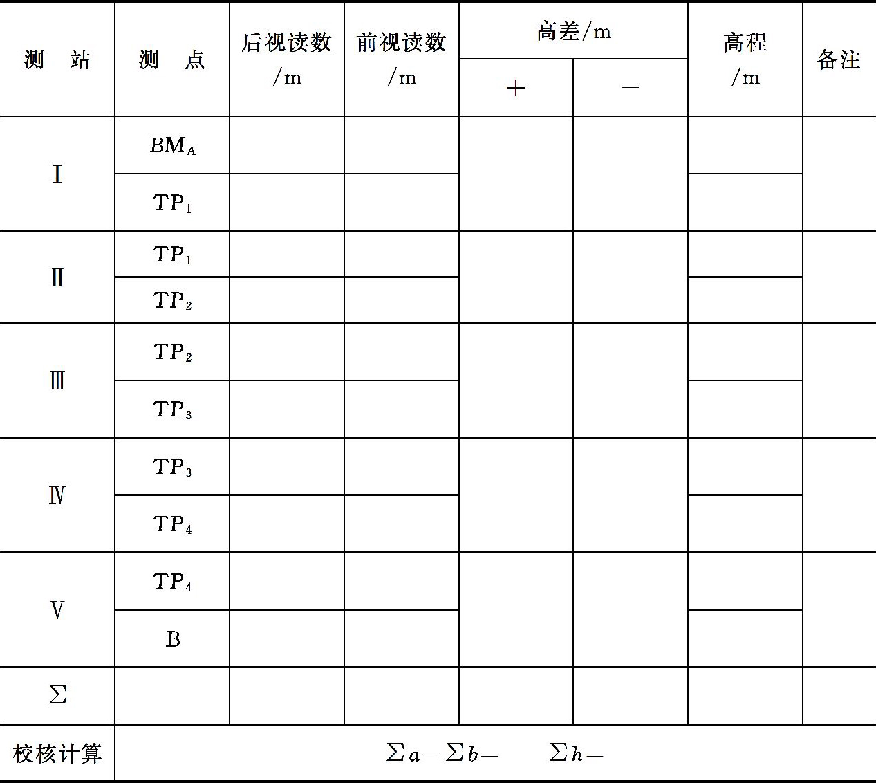 表2-4 水准测量手簿