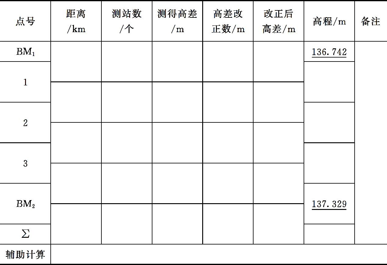 表2-5 水准测量成果计算表
