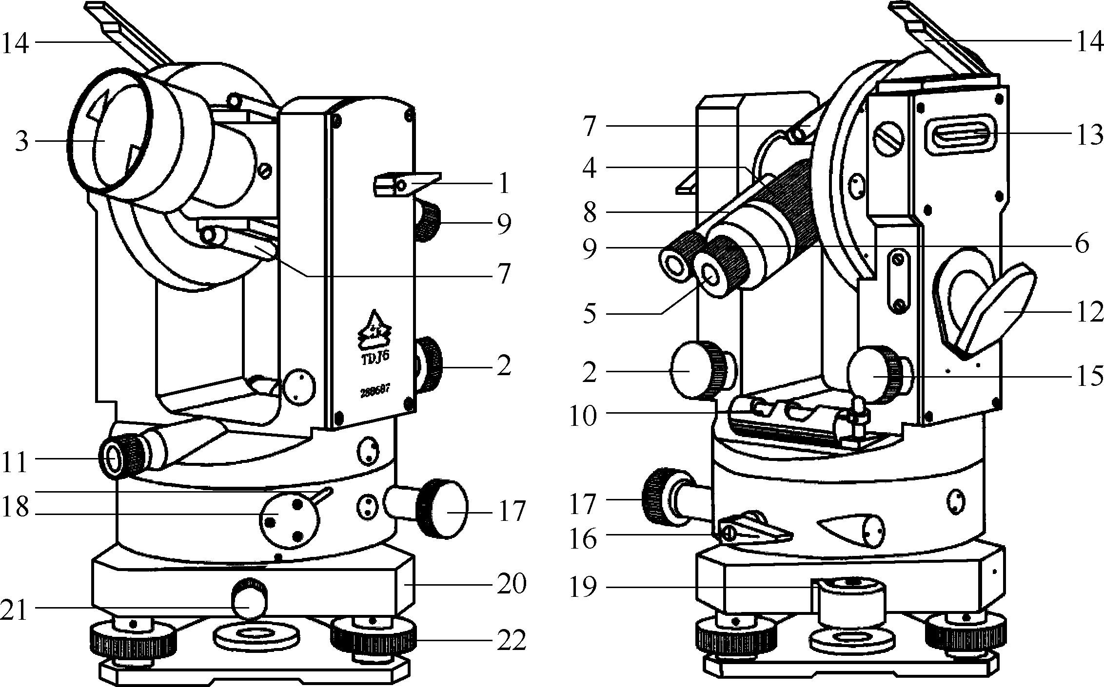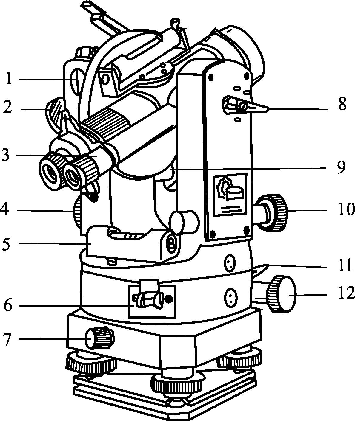 图3-7所示为DJ6-1型光学经纬仪,图3-8为该仪器的光路示意图。