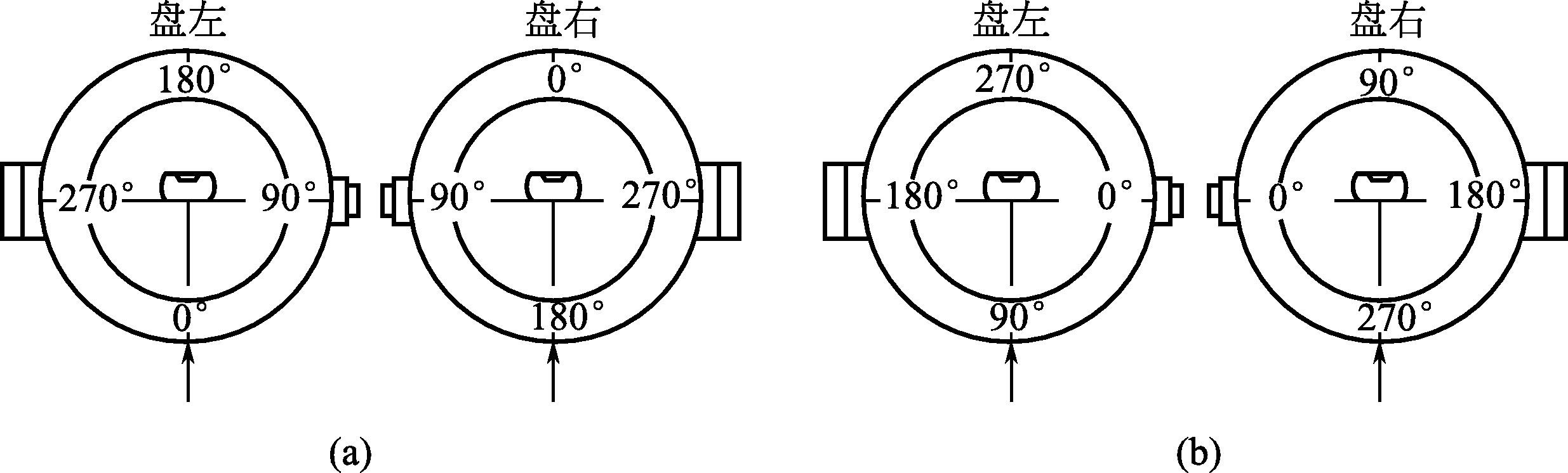 竖盘注记形式很多,图3-17所示为DJ6型光学经纬仪常见的两种注记形式。