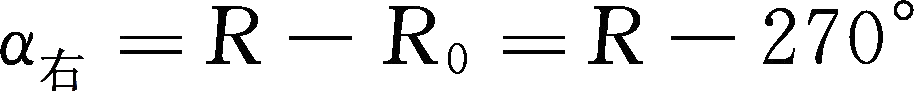 图3-18的下半部分是盘右时的三种情况,视线水平时读数 R 0 =270°,仰角时读数增大,俯角时读数减小。因此,盘右时竖直角应为照准目标时的读数减视线水平时的读数,即