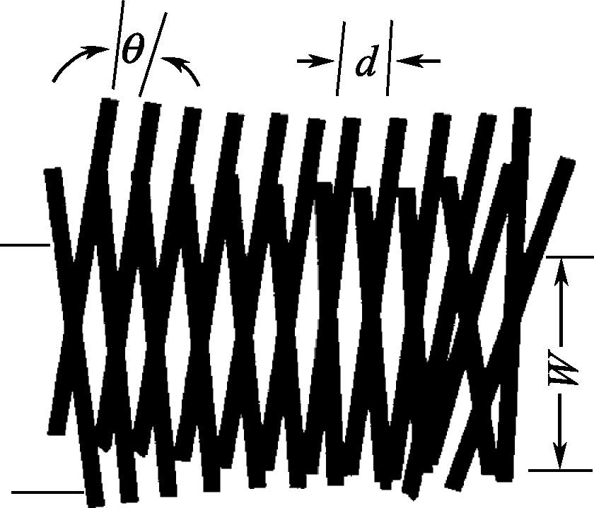 为了提高测角精度,在光栅测角系统中采用了莫尔条纹技术,如图3-31所示。产生莫尔条纹的方法是:取一小块与光栅盘具有相同密度和栅距的光栅,与光栅盘以微小的间距重叠,并使其刻线互成一微小夹角 θ ,这时就会出现放大的明暗交替的莫尔条纹(栅距由 d 放大到 W )。