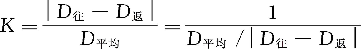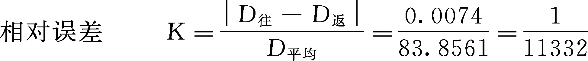 为了防止丈量中发生错误及提高量距精度,需要进行往返丈量。若合乎要求,取往返平均数作为丈量的最后结果。往返丈量的距离之差与平均距离之比,化成分子为1的分数时称为相对误差 K ,可用它来衡量丈量结果的精度。即