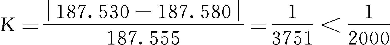 【例4-1】 A 、 B 的往测距离为187.530m,返测距离为187.580m,则相对误差 K 为
