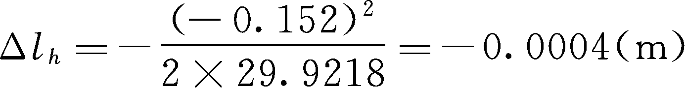 设量得的倾斜距离为 D ',两点间测得高差为 h ,将 D '改算成水平距离 D 需加倾斜改正Δ l h ,一般用下式计算。