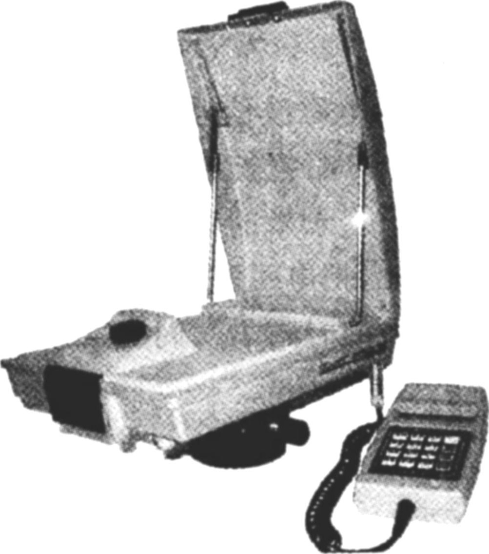 1968年AGA公司又推出了世界上第一台商品化的AGA-8激光测距仪(图5-2)。该仪器采用5mW的氦-氖激光器作发光元件,白天测程为40km,夜间测程达60km,测距精度±(5mm+1×10 -6 × D ),主机重23kg,功耗75W,该测距仪曾在我国天文大地网和特级导线的边长测量中发挥过巨大作用。激光测距仪的优点是测程远、精度高,可以昼夜观测。