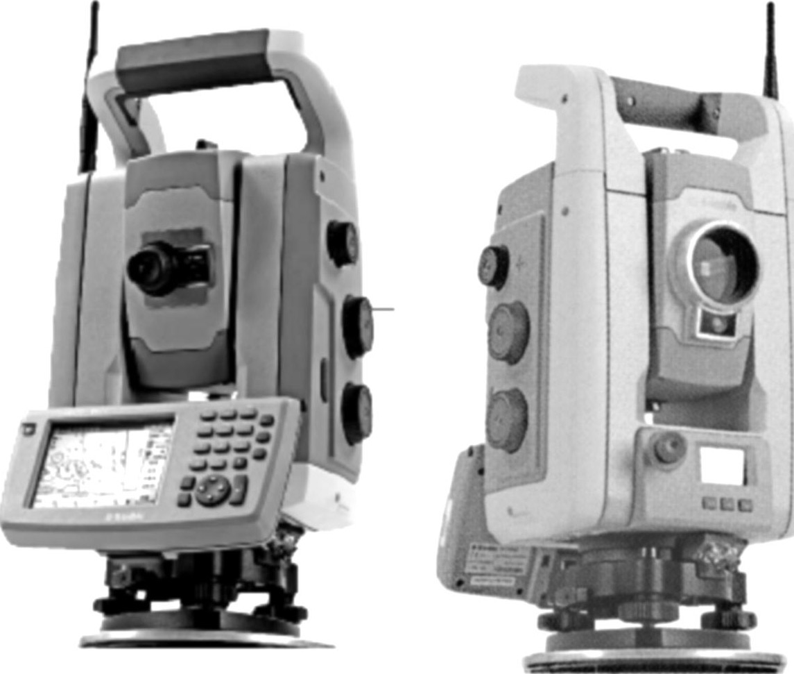 现在的红外测距仪已经和电子经纬仪及计算机软硬件制造在一起,形成了全站仪,如美国天宝S6(图5-4)、徕卡TCA2003、拓普康GTS-820A和索佳SRX系列有自动照准、智能跟踪功能,并向着自动化、智能化和利用蓝牙技术实现测量数据的无线传输方向飞速发展。