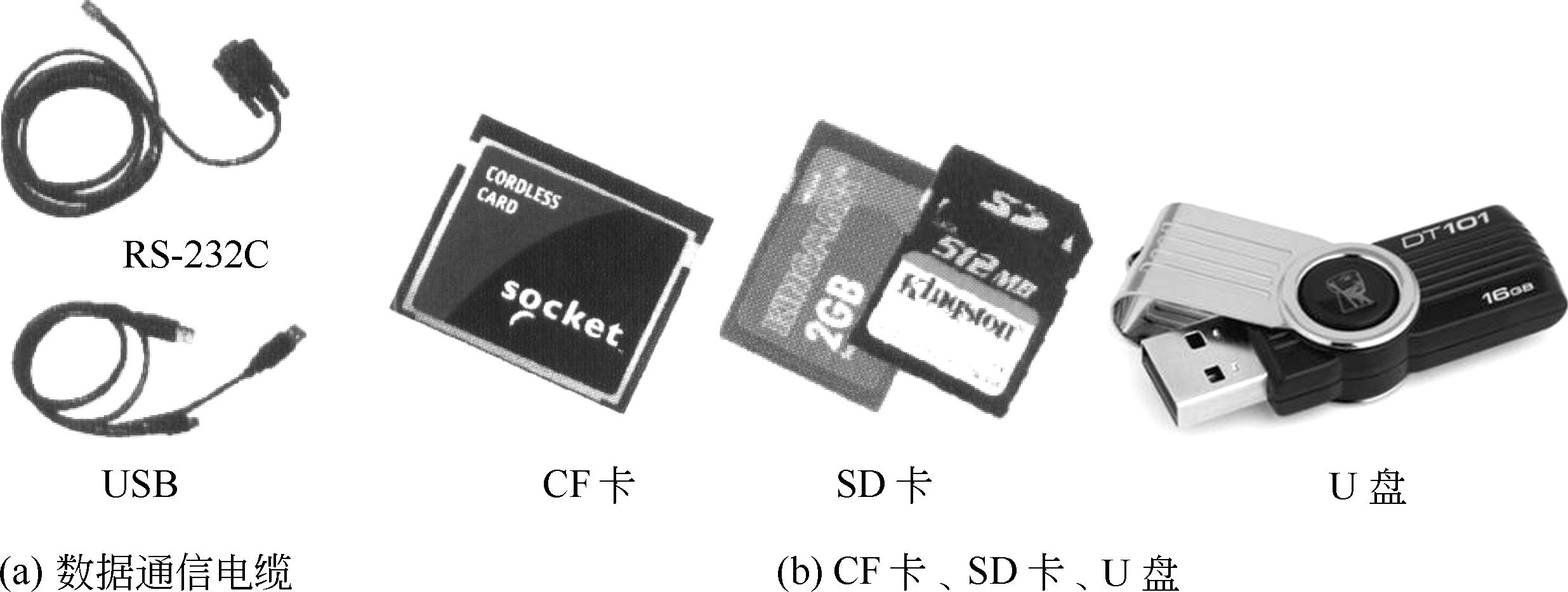 (7)数据通信电缆与CF卡、SD卡、U盘 数据通信电缆用于连接仪器和计算机进行数据通信[图5-11(a)];CF卡、SD卡、U盘用于拷贝数据[图5-11(b)]。
