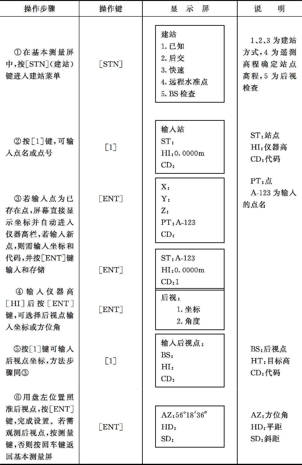 ⑤自由设站(类似于后方交会,但可观测多达10个后视已知点,以平差得出测站的平面位置和高程);