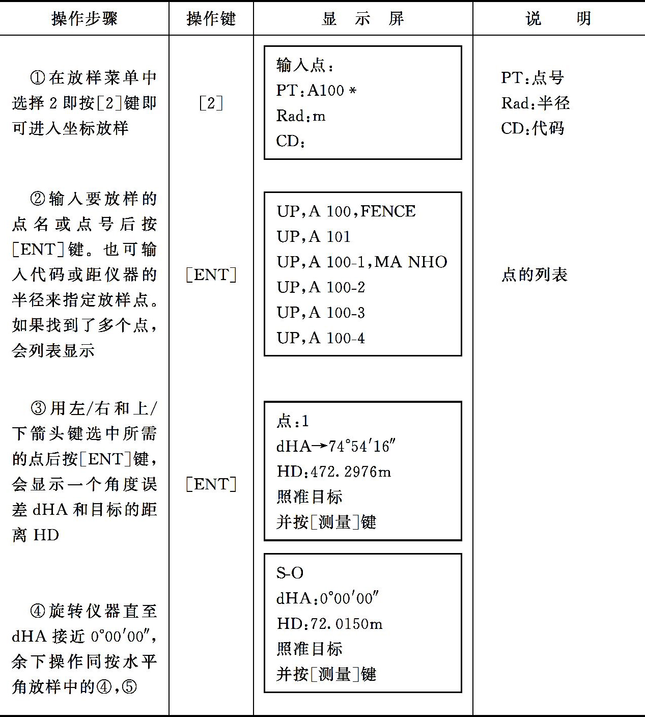 (6)放样测量 进行放样测量前亦需先设站,其操作步骤同坐标测量的①~⑥。
