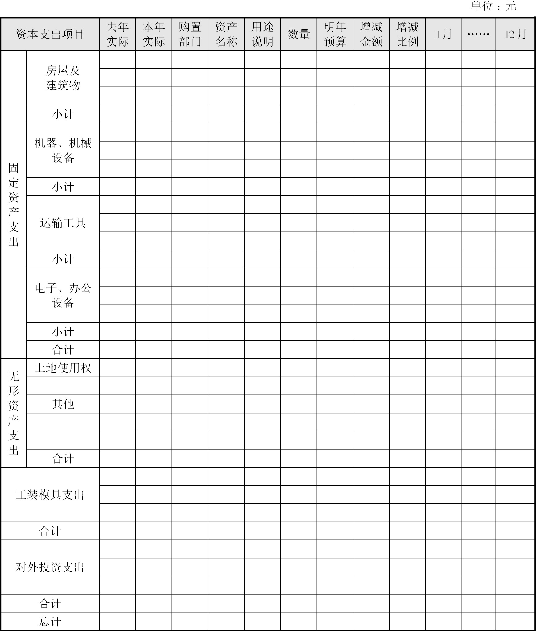说明:资本支出有发生的月份才填写(总务统筹采购)(属于资产类)。