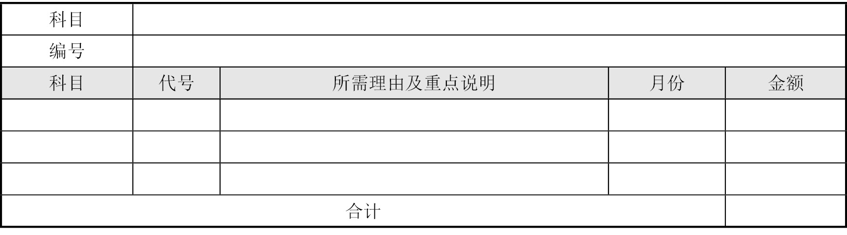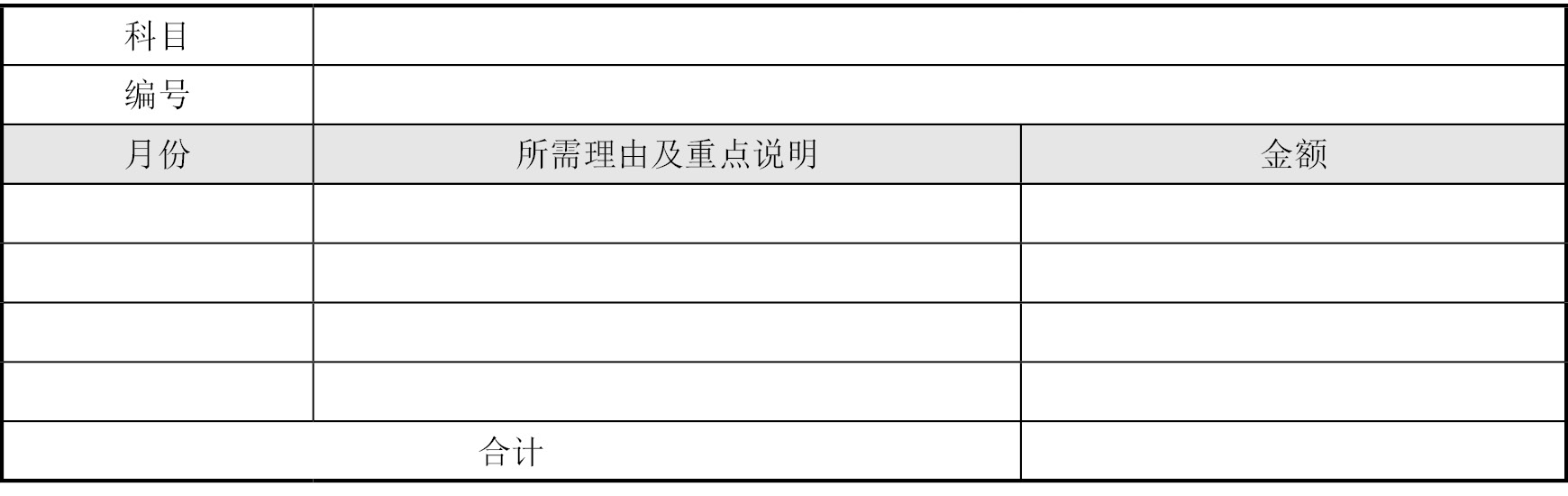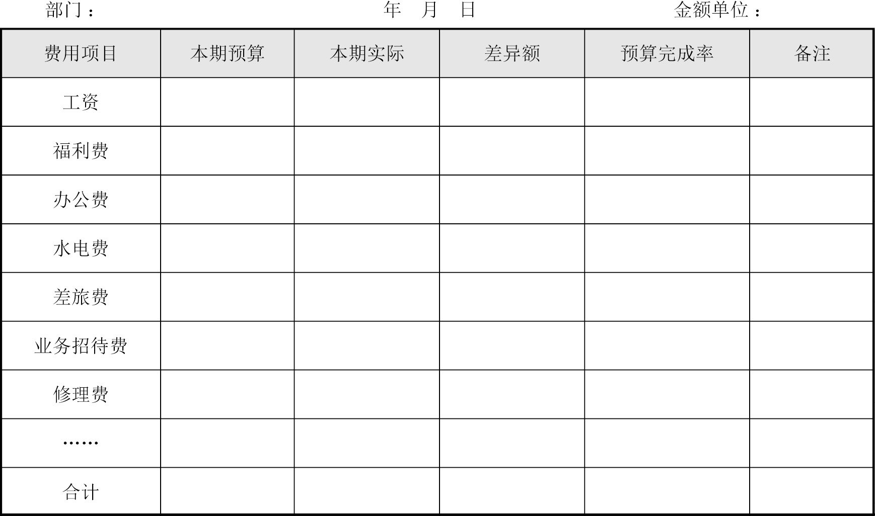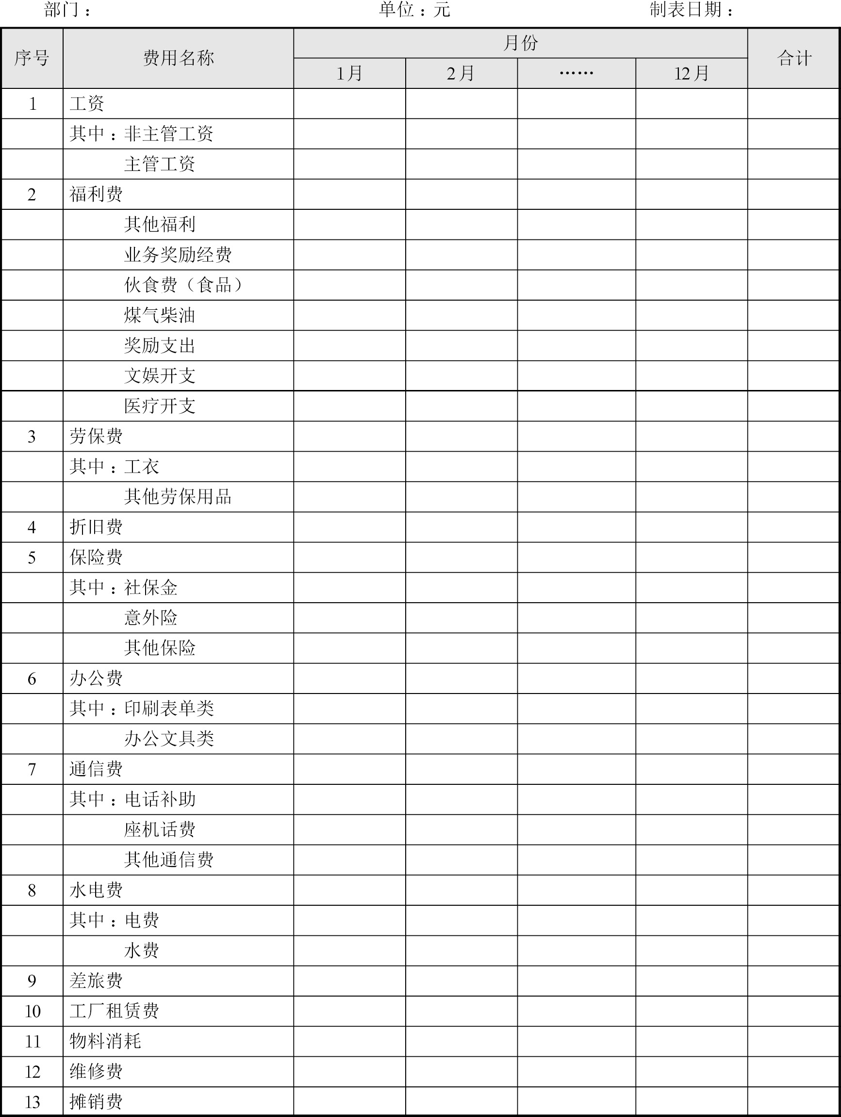说明:依费用科目来编制,一个科目写一张(部门经常性的支出)。