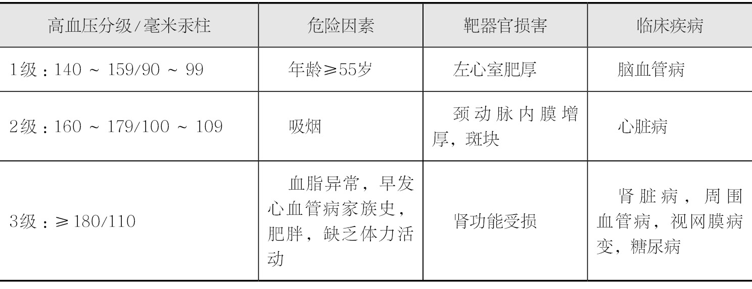 表2 基层版高血压防治指南中高血压危险分层主要内容