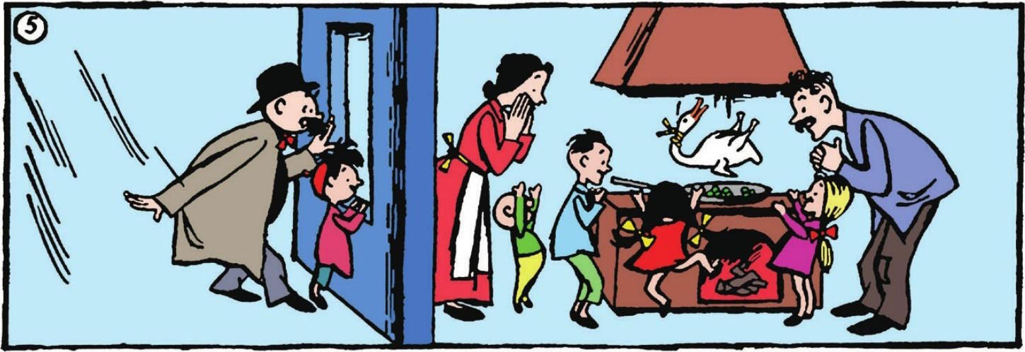 “哇,圣诞老人真好!他听到我们的祈祷了!”从烟囱落下的鸭子让一家人欢呼不已。