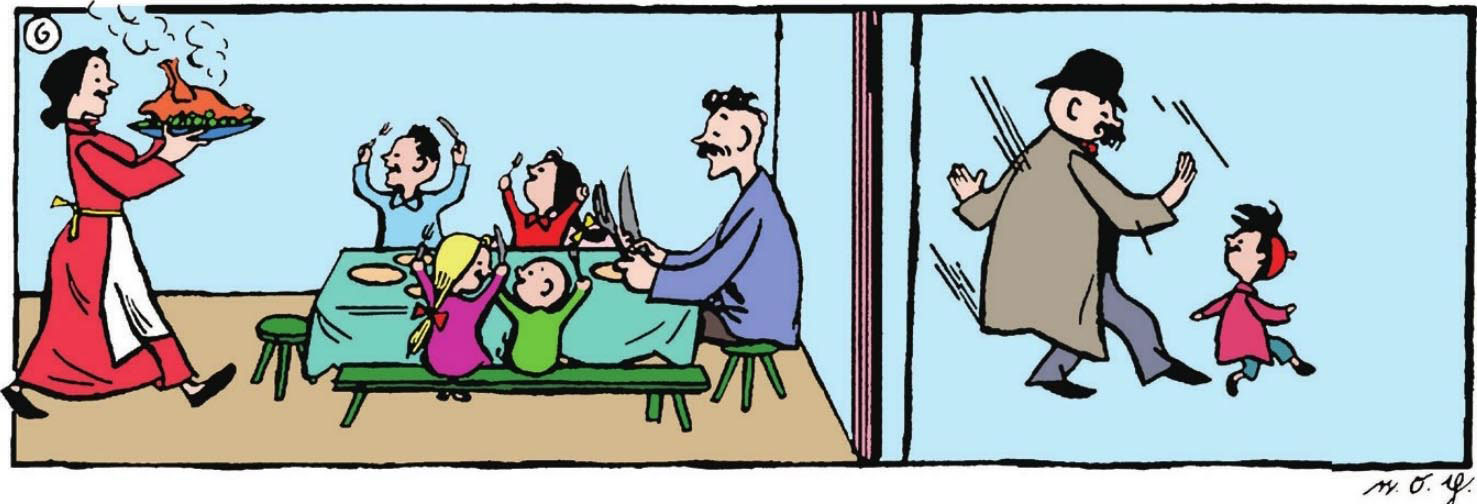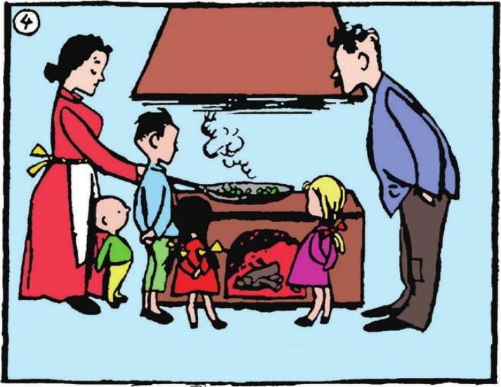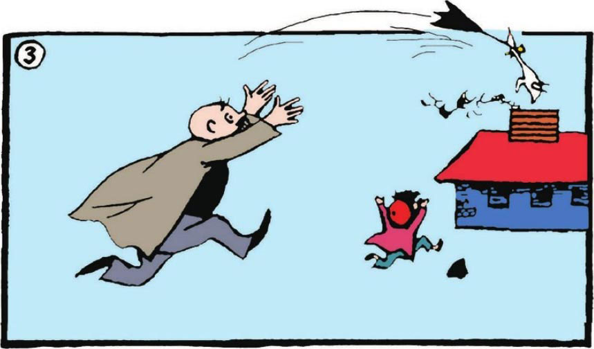"Daddy, terrible, the duck is falling into the other's chimney."