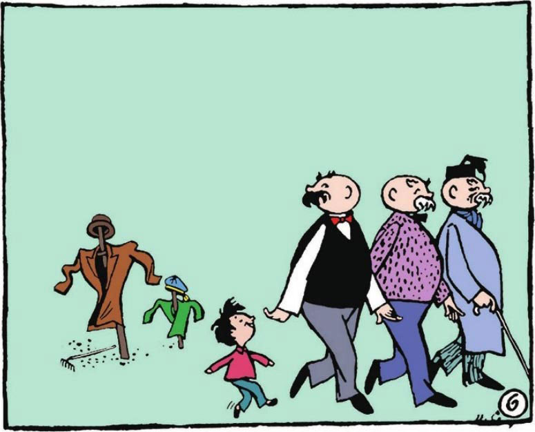 "How funny. I nearly laugh to death. Are you comfortable to be dressed like that?"Ask the great-grandpa and the grandpa as they're laughing.