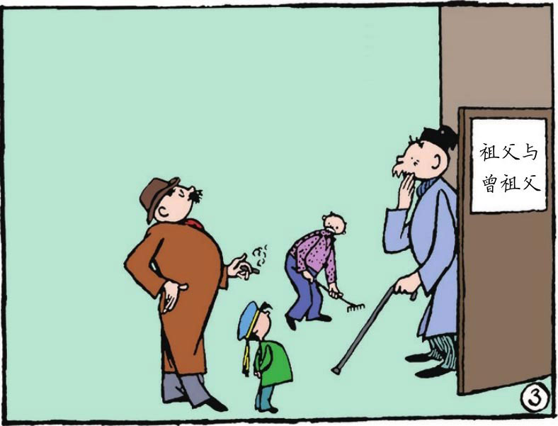 "Wahaha, it's funny you two look like acting on stage."The great-grandpa and the grandpa can't help laughing.