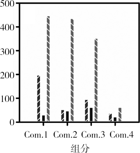 四个组分的激发和发射图谱载荷分析如图2-16所示。从图中可以看出,载荷曲线中四个组分的激发光谱和发射光谱较光滑且均存在轻微的重叠,而且激发光谱有一个或多个最大峰值,但是发散光谱有且仅有一个最大峰值,这个现象也较好地符合预期荧光光谱特性,说明解析的四个组分均是有效的 [112,113]