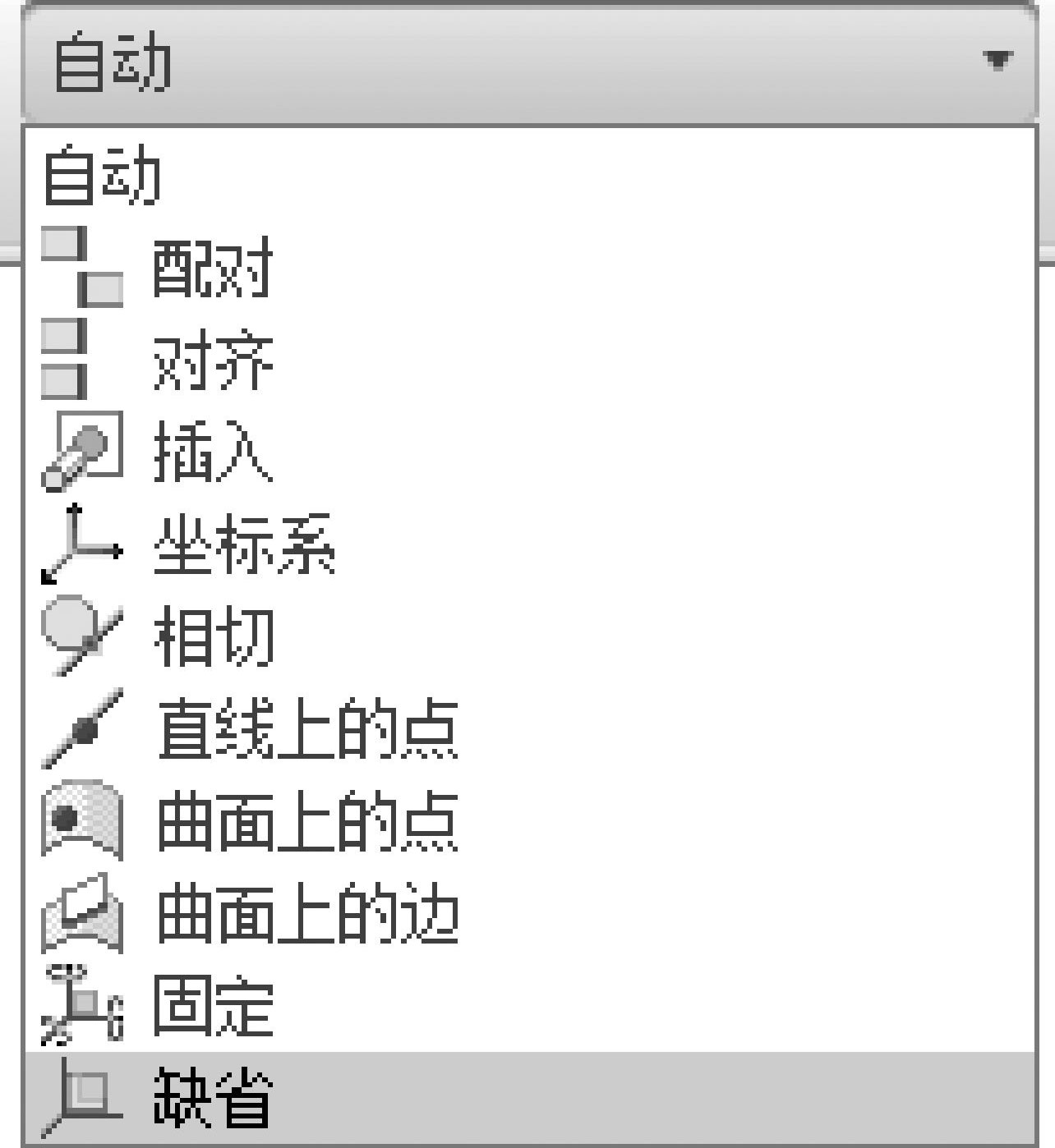 自动约束在两个参考特征被选中时,系统依据特征情况自动判定、选取合适的约束类型并建立装配关系,这是一种系统默认的约束施加方式,也是提高装配速度的一种有效方法。