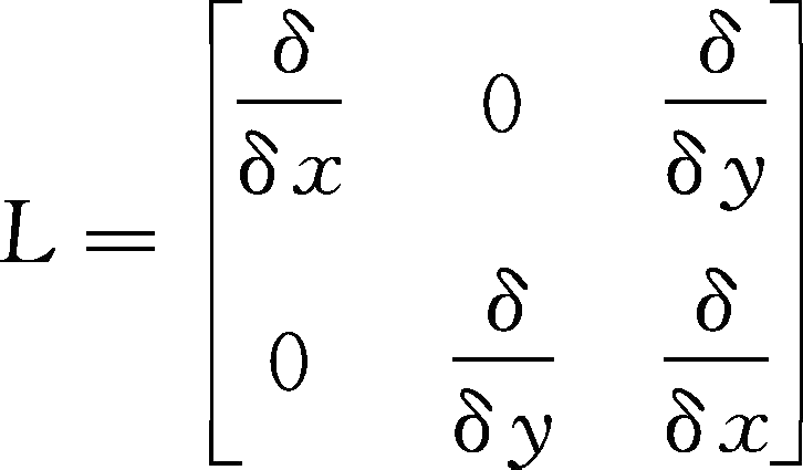 对于平面问题有 ε T ={ ε x ε y γ xy }, u T ={ u x u y }。