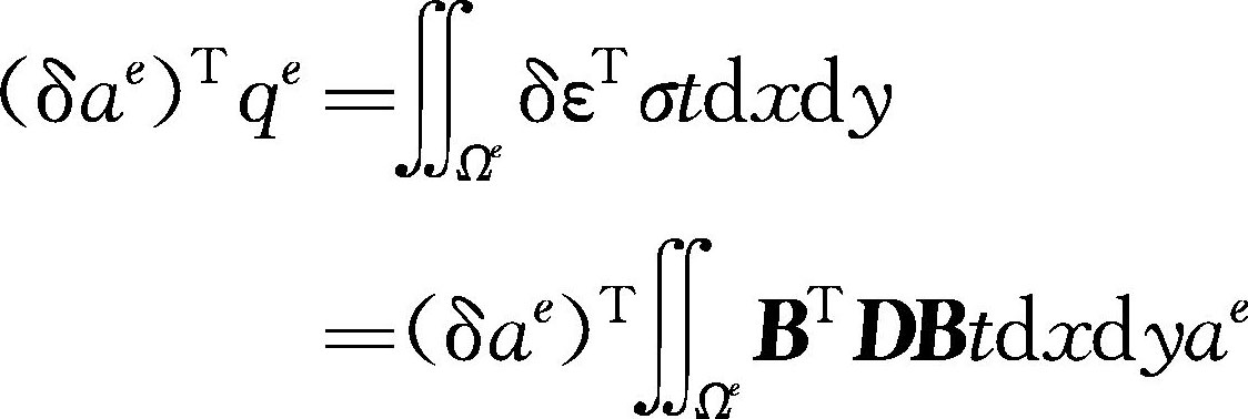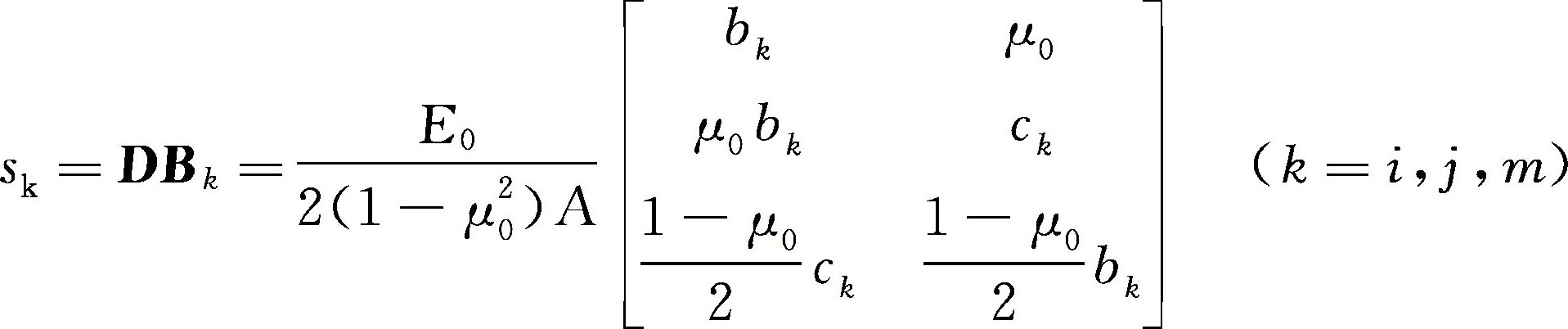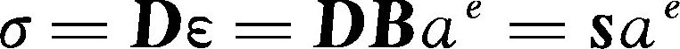 再将单元应变表达式(3-14)代入本构方程(3-3),可得单元应力表达式: