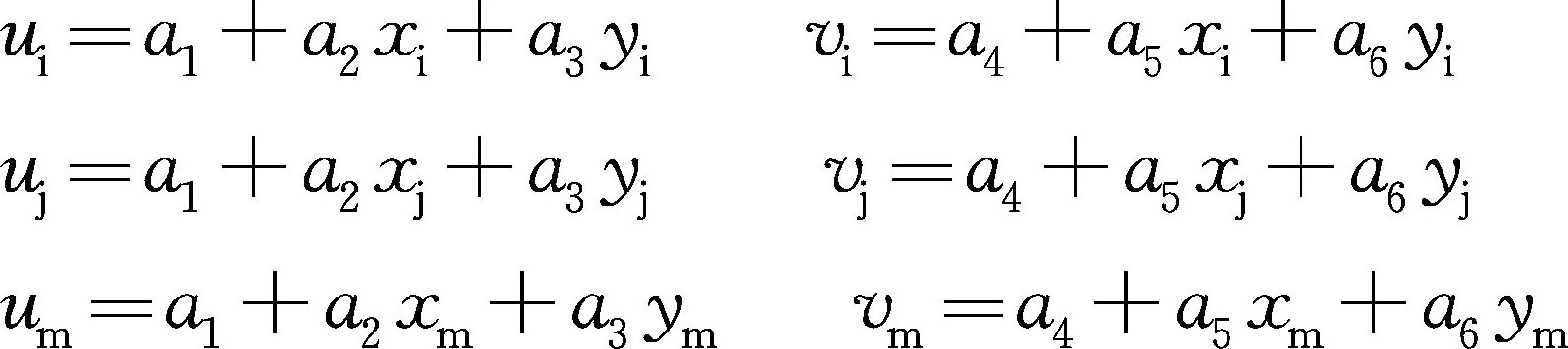 式中 u k , v k ——节点位移, k = i , j , m (下同);