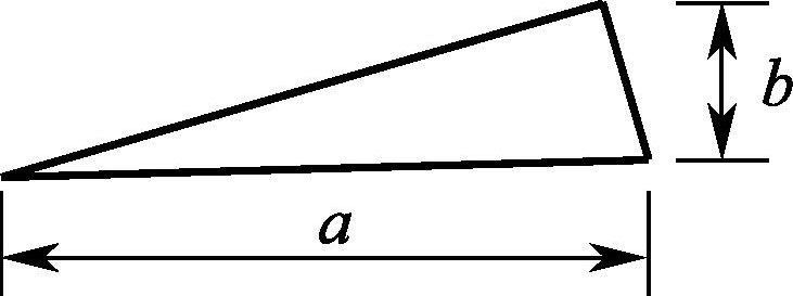 单元形状误差由极度不规则的单元结构产生。例如:当图3-10所示三节点三角形单元的底高比(即 a/b )非常大时,就会造成单元的严重畸变或退化,从而影响有限元求解精度,极端情况下还将导致求解失败或数值计算无法进行。