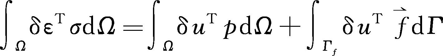 式(3-8)表明,外力(包括 Ω 内的体积力和边界 Γ f 上的面力)使弹性体产生虚位移所做的功等于弹性体因虚应变而提高的能量。