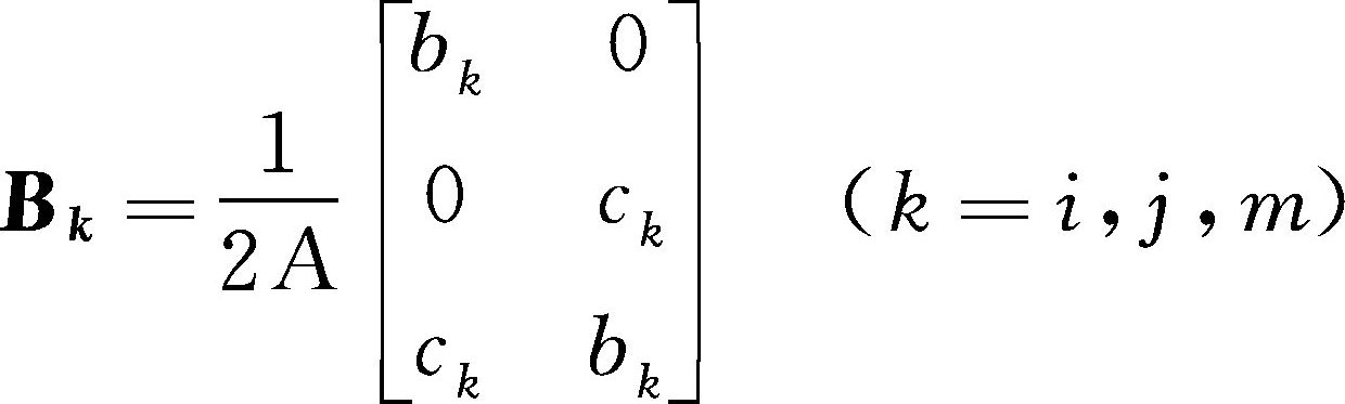 a k , b k , c k ——与节点坐标有关的常数, a k = x j y m - x m y j , b k = y j - y m , c k =- x j + x m 。